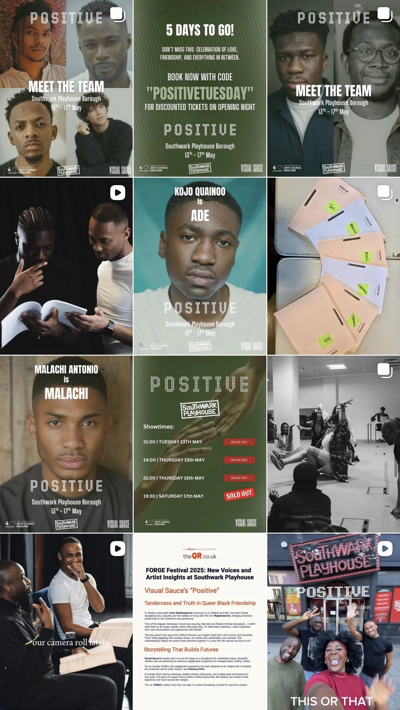 Developed the social media strategy, providing creative direction for content and thoughtful feed curation which facilitated audience growth and established a cohesive digital identity for the show. A wider reach and stronger online presence contributed to Positive selling out all four performances at Southwark Playhouse.